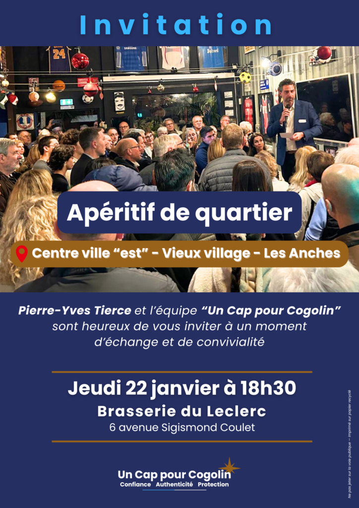 Un moment simple, autour d’un verre, pour se rencontrer, discuter de votre quartier en particulier, de Cogolin en général, de votre quotidien, et surtout échanger librement sur tout ce que vous attendez de nous.![]()